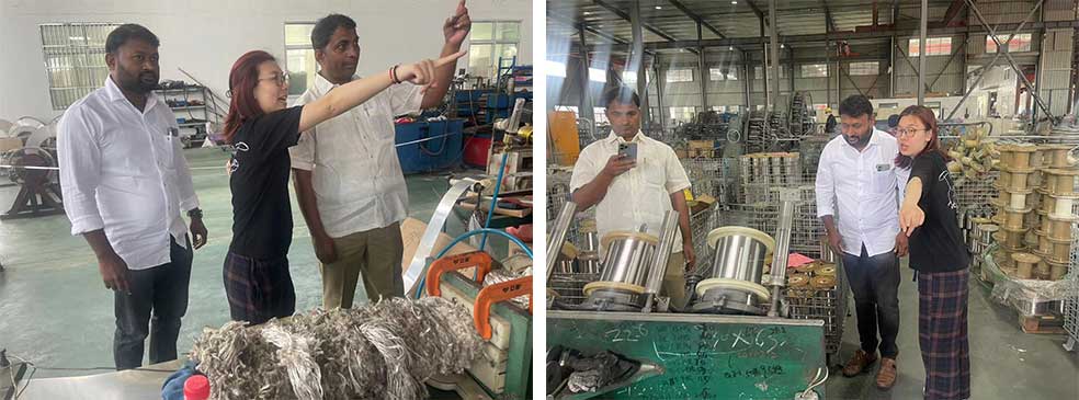 Our Indian customers visited our factory. We showed them how to produce the metal hose and PTFE hose. They were interested in our metal hose machine, wire braiding machine, PTFE hose making machine, etc.